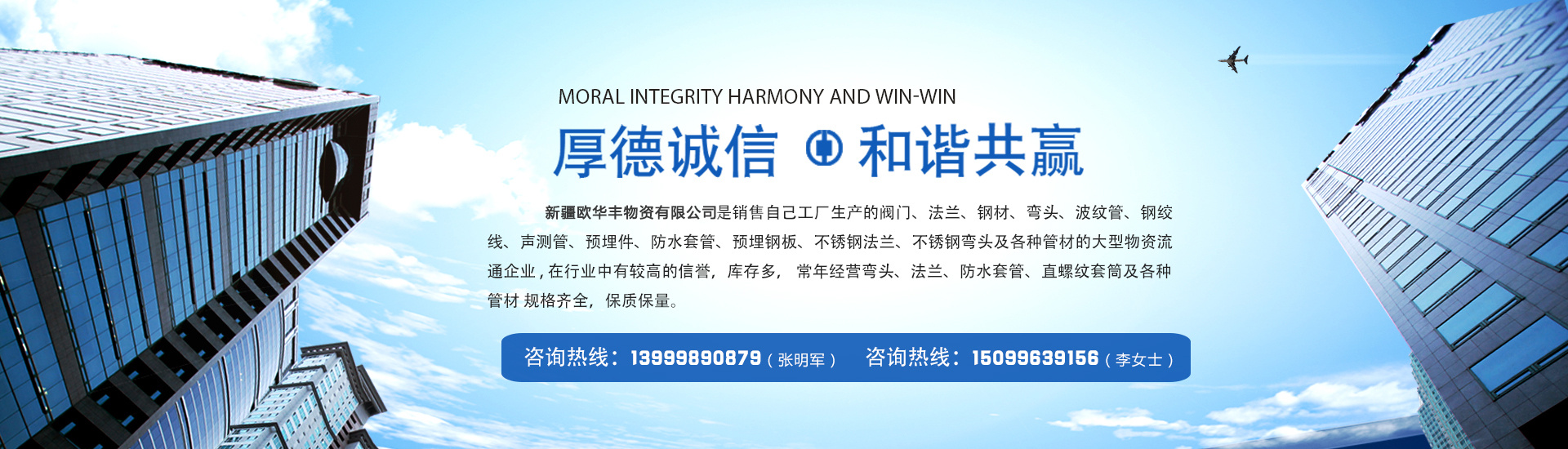 新疆歐華豐物資有限公司是銷(xiāo)售自己工廠生產(chǎn)的彎頭 法蘭 防水套管 及各種管材的大型物資流通企業(yè) , 在行業(yè)中有較高的信譽(yù),庫(kù)存多,常年經(jīng)營(yíng)閥門(mén)、法蘭、鋼材、彎頭、波紋管、鋼絞線、聲測(cè)管、預(yù)埋件、防水套管、預(yù)埋鋼板、不銹鋼法蘭、不銹鋼彎頭及各種管材 規(guī)格齊全,保質(zhì)保量。 公司一貫以: 服務(wù)上乘、質(zhì)量?jī)?yōu)質(zhì)、價(jià)格合理、客戶(hù)至上、服務(wù)周到、讓利客戶(hù)、薄利多銷(xiāo)為原則,誠(chéng)實(shí)守...